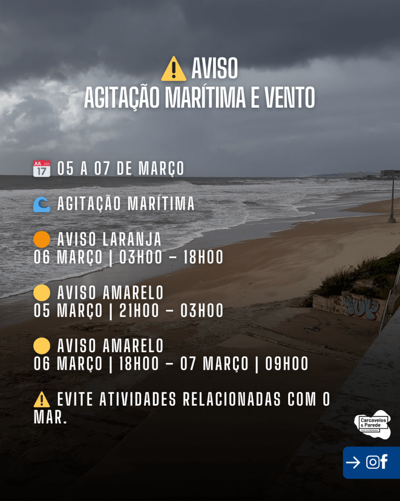 De acordo com o IPMA – Instituto Português do Mar e da Atmosfera, estão previstos perÃodos de agitação marÃtima forte e vento intenso entre hoje e 07 de março.