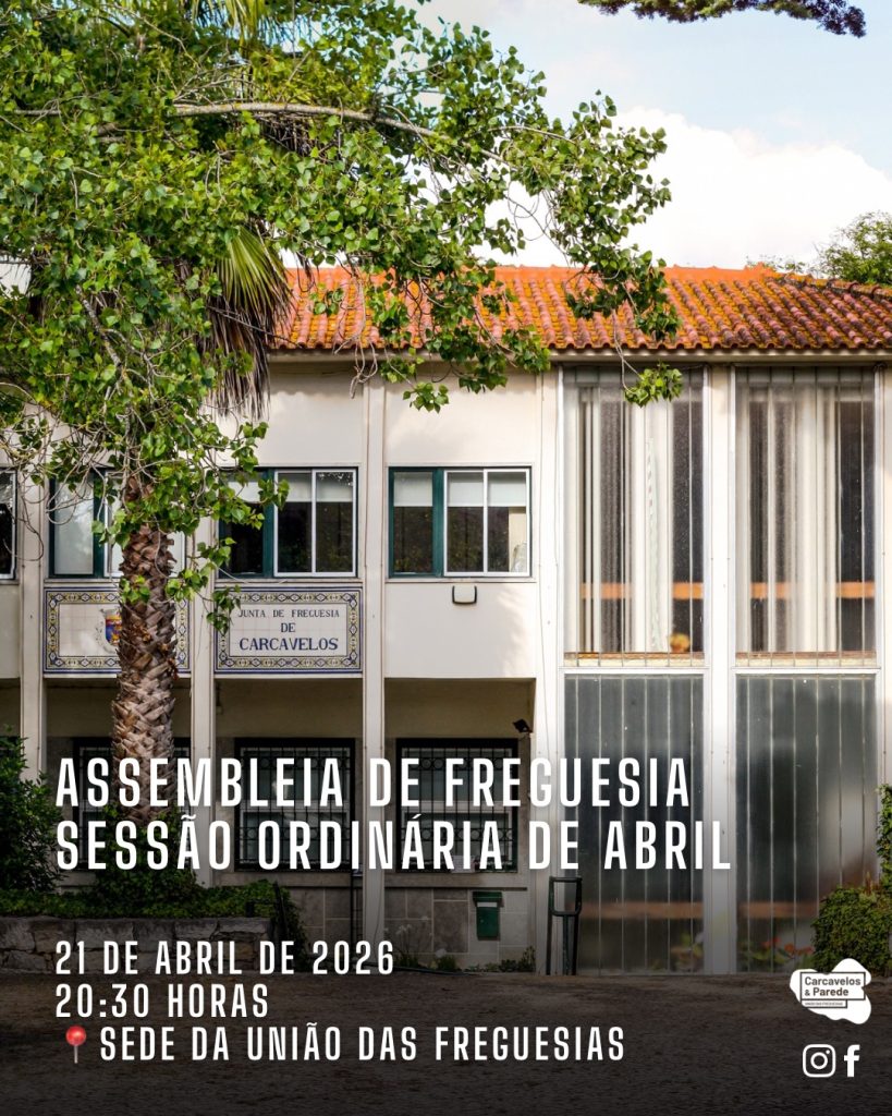 A União das Freguesias de Carcavelos e Parede informa que se realiza no próximo dia 21 de abril de 2026, pelas 20h30, na Sede da UFCP, em Carcavelos, a Sessão Ordinária da Assembleia de Freguesia.