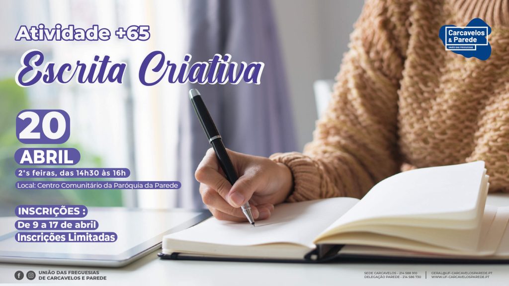 Os “jovens há mais tempo†têm uma nova atividade para explorar! A União das Freguesias de Carcavelos e Parede lança uma sessão de Escrita Criativa, com início a 20 de abril.