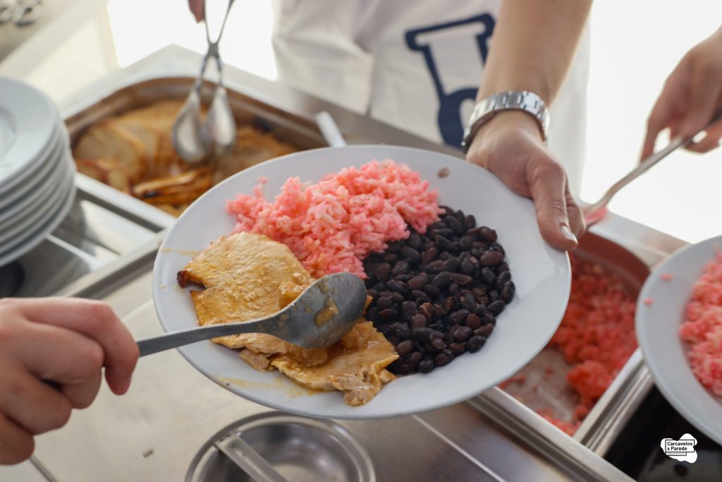 O Chef Rui Mota colocou o seu conhecimento ao serviço dos alunos da Rebelva, ao apresentar uma ementa cuidada: sopa de lombardo, lombo de porco assado com arroz e feijão preto, e ainda opções vegetarianas e de dieta, terminando com fruta da época.