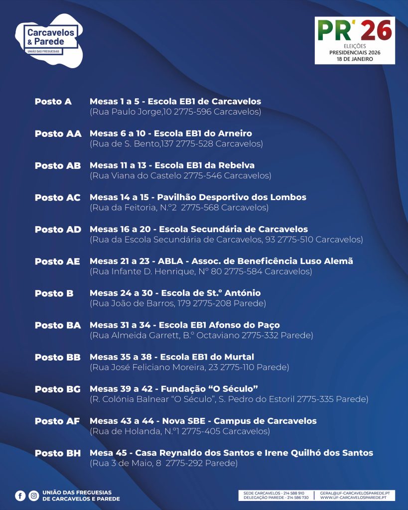 Já estão disponíveis os locais de voto na União das Freguesias de Carcavelos e Parede.