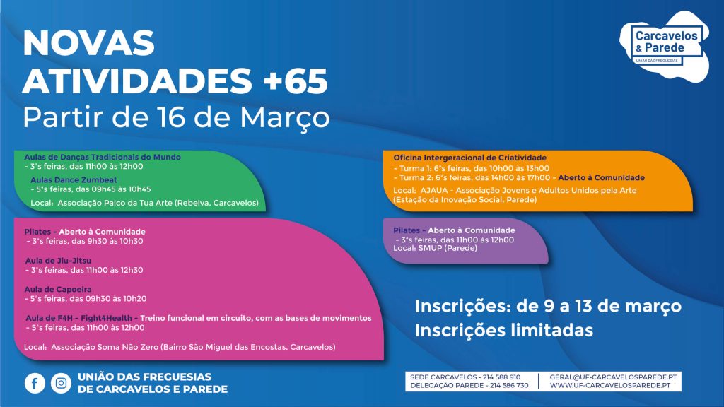 A União das Freguesias de Carcavelos e Parede continua a reforçar a oferta de atividades destinadas à população sénior, promovendo o bem-estar, a atividade fÃsica e a participação na comunidade.