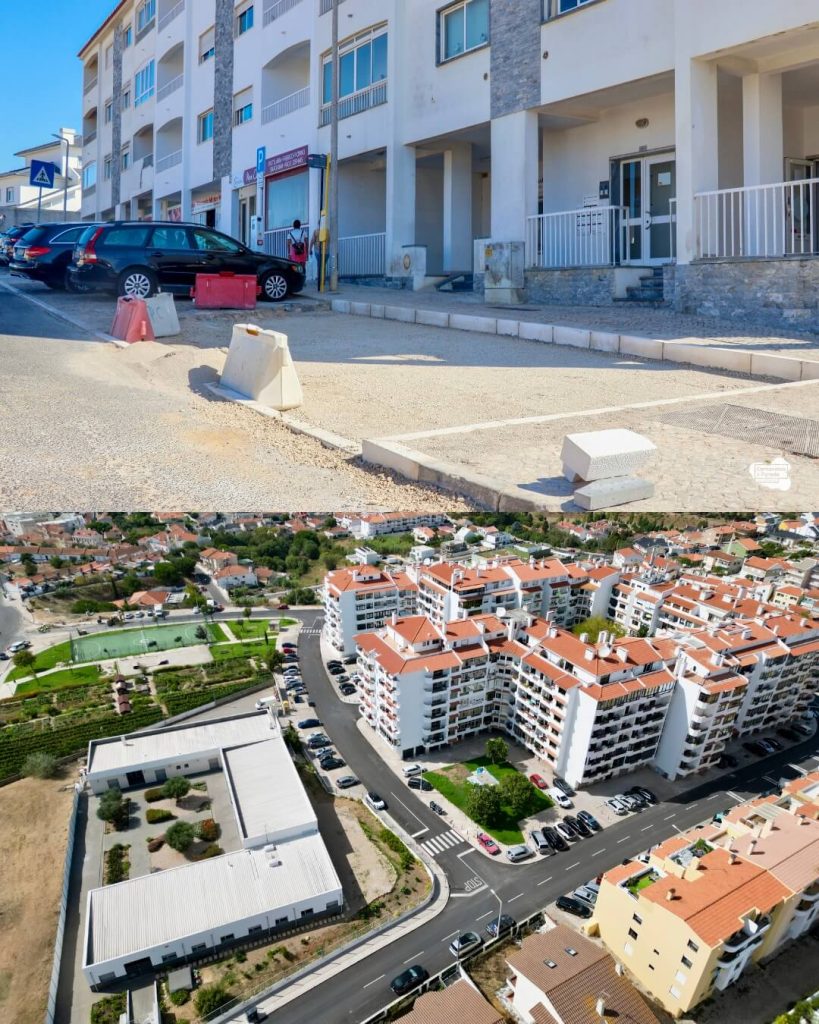 Várias intervenções estão em curso nesta zona da Freguesia, nomeadamente na Avenida Maria Lamas e na Praceta Vasco Morgado, com obras que vão desde a criação de novos arruamentos e estacionamentos, até à melhoria de acessos pedonais e à reorganização do espaço público.