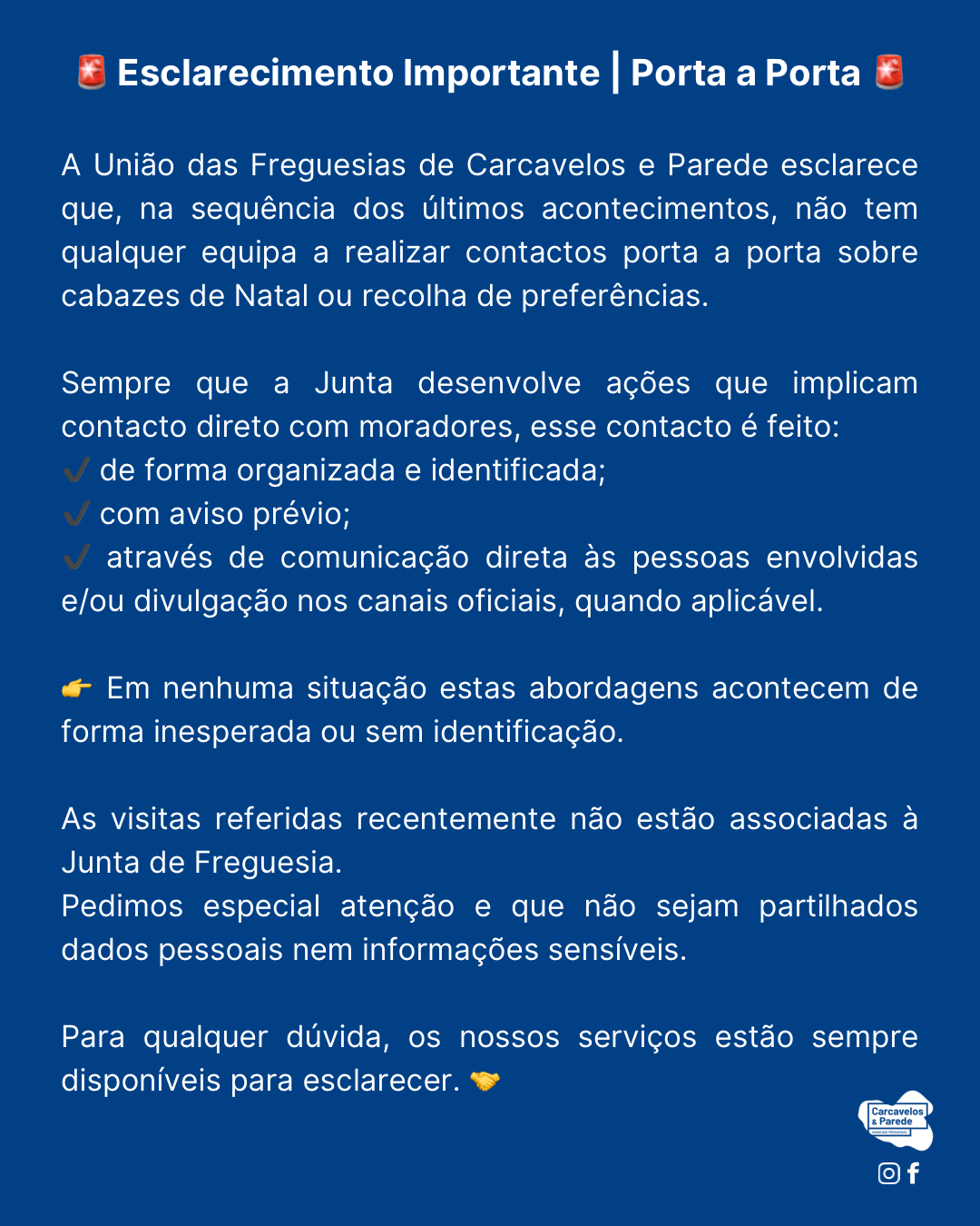 Comunicado sobre os últimos contactos porta a porta na freguesia